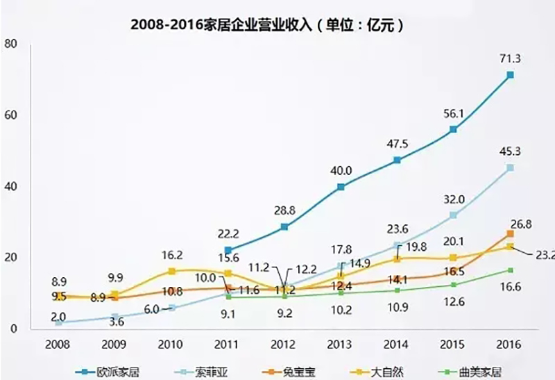 3)主营业务的瓶颈使越来越多的家居企业将目光转向其他战场,尤其是在单一领域占有一席地位的企业,随着整体消费意识的改变,逐渐向集体服务商的转移,丰富产品品类,提供更多消费选择,满足消费者整体解决方案需求。