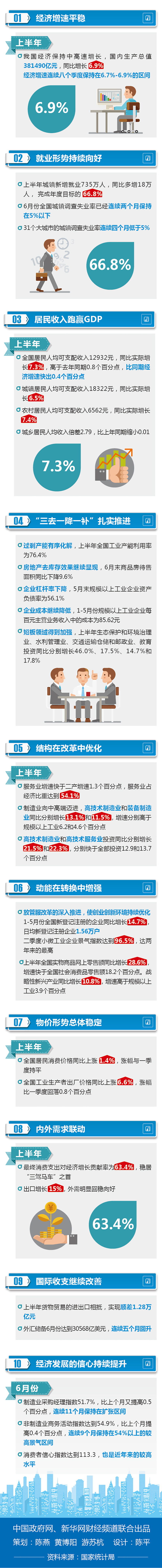 7月17日,国家统计局介绍了2017年上半年国民经济运行情况,新闻发言人邢志宏表示,上半年我国经济运行保持在合理区间,稳中向好态势趋于明显。上半年中国经济呈现哪些亮点?中国政府网用10组数据告诉你。