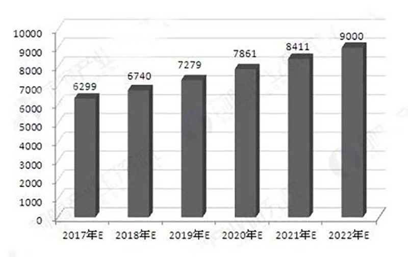 根据房地产行业的逐渐复苏以及我国门窗行业对于“互联网+传统行业”和定制服务的探索,在未来几年中,我国门窗行业将迎来一个较为快速的发展时期。预计到2017年,我国门窗行业的市场规模将达到6299亿元左右,到2022年,我国门窗行业的市场规模将突破9000亿元。