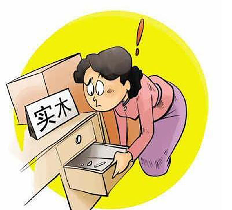 材质标注不明确,鱼龙混珠的现象在红木家具销售中较为常见。其主要表现为有的家具商品未明确标注材质名称,消费者在购买时,只能根据销售人员的单方面介绍来了解产品信息。商家不标明家具的具体材质,有的生产商为降低成本,甚至更换材质,以廉价木料冒充红木、以边材冒充芯材、用人造板贴木皮冒充实木家具等等。