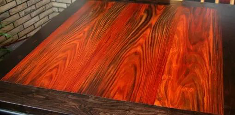 烫蜡后木材的颜色比烫蜡前要深一些,色泽也会更加圆润,降低了材色的浮躁感,增加了其深沉、含蓄、内敛的韵味,弥补了有些木材材色上的缺陷(见图2)。