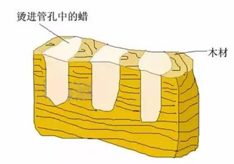 首先,可以减小木材的干缩湿胀,防止家具翘曲变形。蜡有一定的拒水性能,其渗透性较好,在高温烘烤的作用下,进入到木材的管孔中,堵塞了管孔,一定程度上降低其吸水失水的能力,减小家具因外界环境变化而引起的形变。