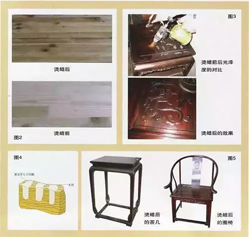 以蜂蜡为主,加入少量川蜡等其他物质所调和而成的混合蜡,其性质兼有蜂蜡和川蜡的优点,而对各自的缺点又可以互相弥补,所以将其烫到家具表面,不仅起到装饰作用,还有很好的保护作用。