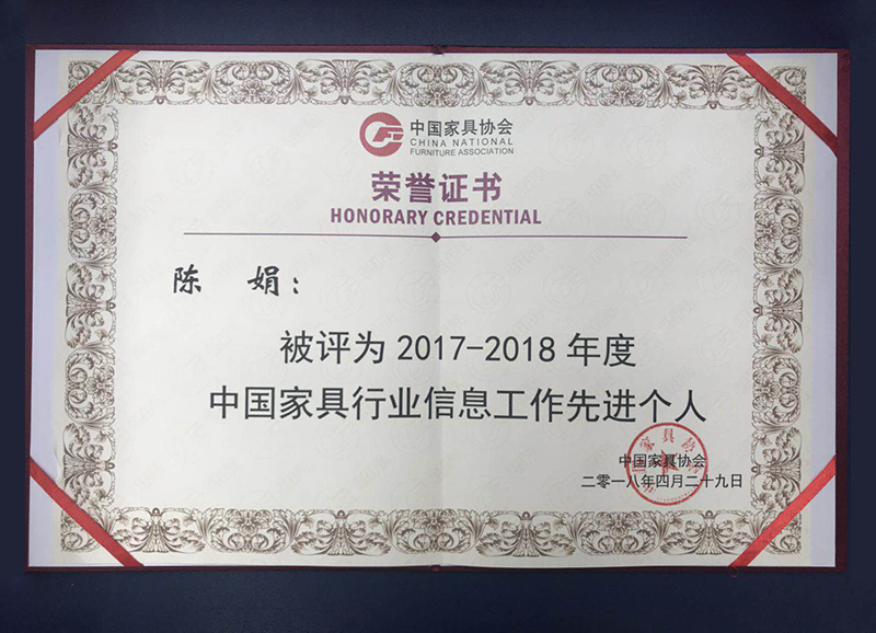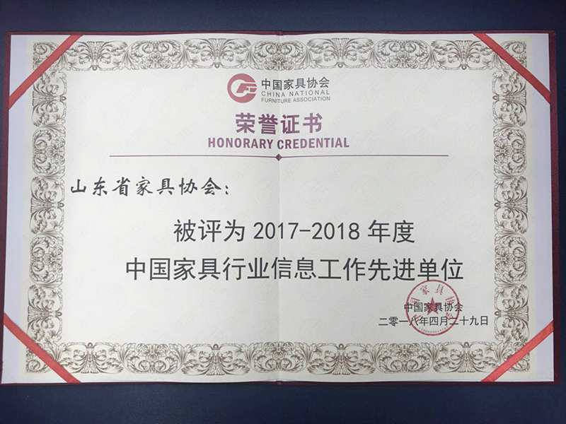 山东省家具协会通过信息工作开展,及时反映行业诉求,准确传达产业政策,借助峰会论坛、青岛国际家具展等交流贸易平台,推动了行业进步与升级,经过中家协评选,再次荣获“中国家具行业信息工作先进单位”,协会信息员陈娟被评为先进个人。