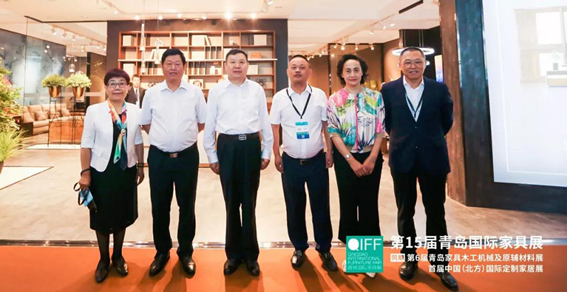 ◆中国家协徐祥楠理事长、张冰冰副理事长兼秘书长,山东省轻工集体企业联社邱青森主任莅临展会指导,山东省家具协会执行会长牛广霞、深圳市家具行业协会执行会长侯克鹏陪同参观。