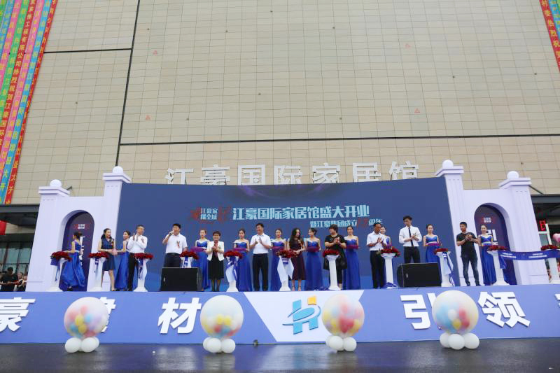 江豪国际家居馆开业典礼上,行业协会会长,江豪集团董事长及集团高层共同剪彩。