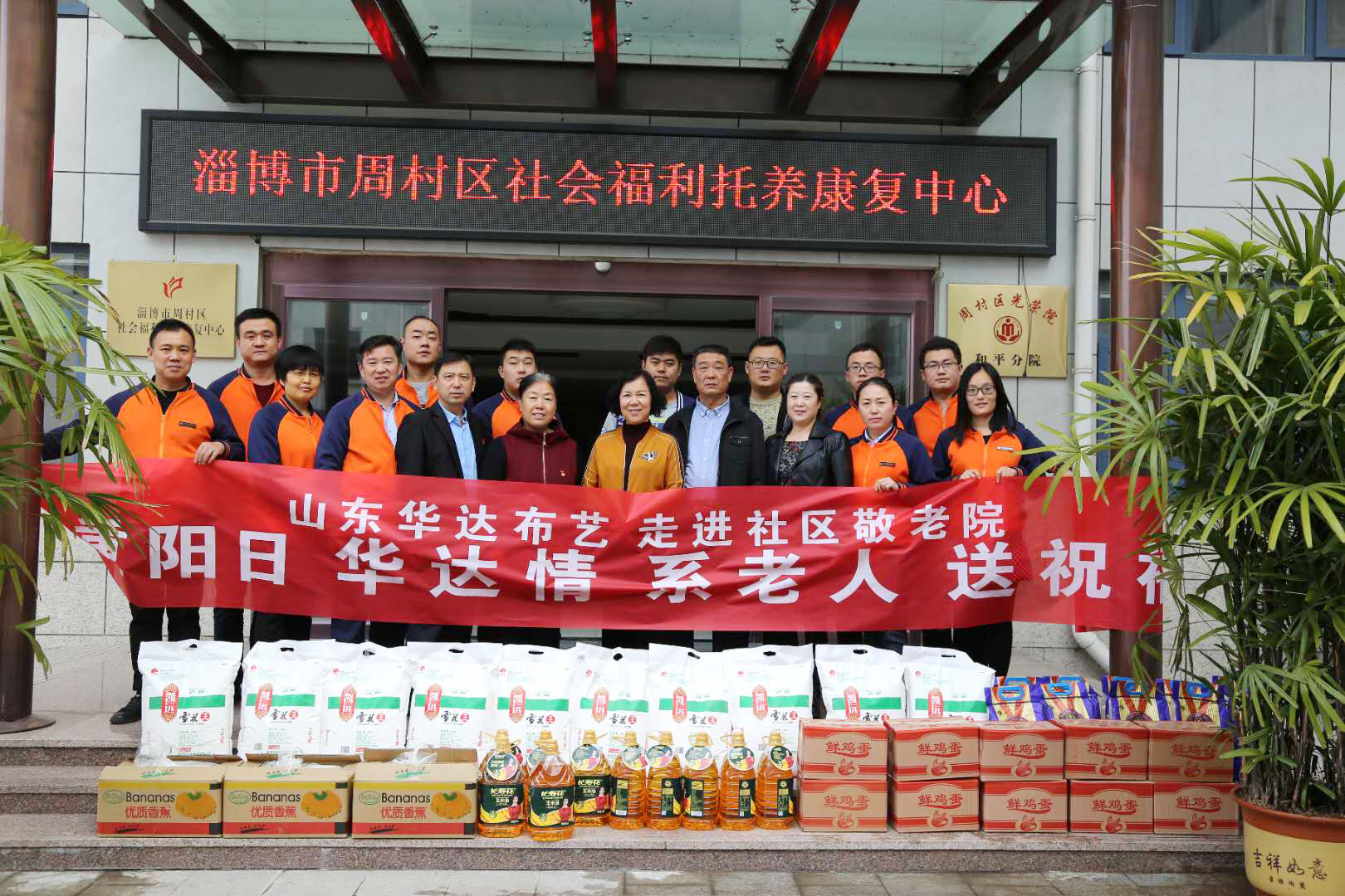 在重阳节来临之际,为弘扬“尊老、敬老、爱老”的中华传统美德,10月15日,山东华达布艺组织了一支十多人的慰问组,到周村区和平社区社会福利托养康复中心,开展“重阳日 华达情 系老人 送祝福”志愿慰问活动,在重阳节为老人们送上诚挚的问候和关怀,营造孝老爱亲、和谐温馨的社会氛围,共筑爱心之城!