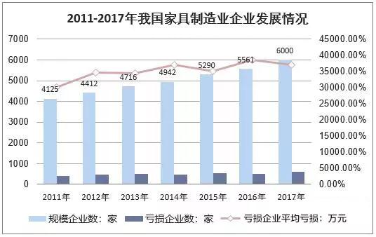 2017年我国家具制造业规模以上数达到6000家,其中608家企业出现亏损,亏损企业平均亏损金额为370.1万元。