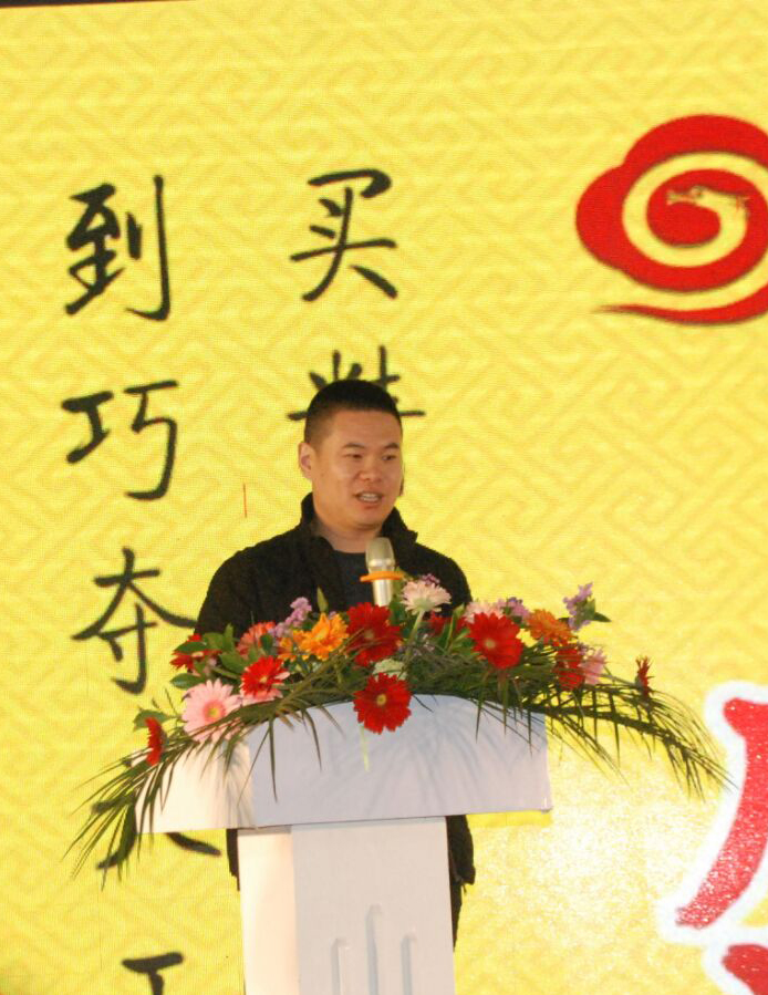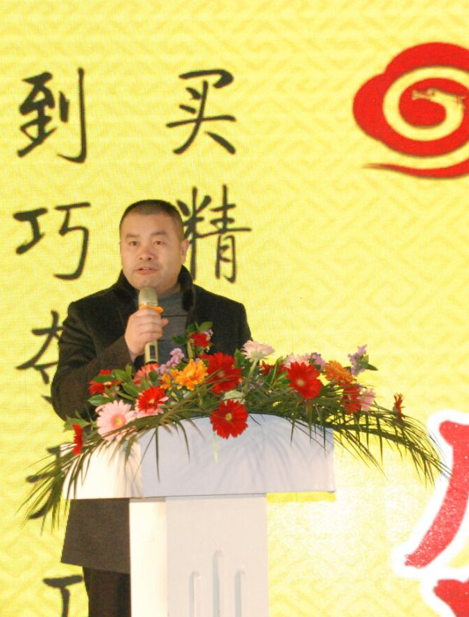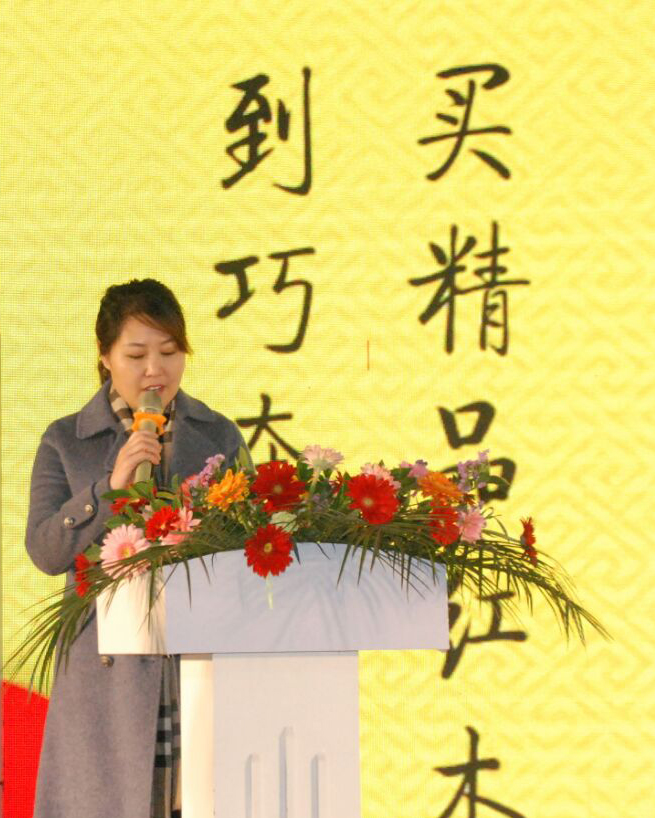 巧夺天工总经理张爱明致辞,巧夺天工总部的基础建设已全面完成,产量明显提升,接下来的任务,是在全国广招经销商,把巧夺天工的产品输送到全国各地,希望彼此深入合作,共谋发展。