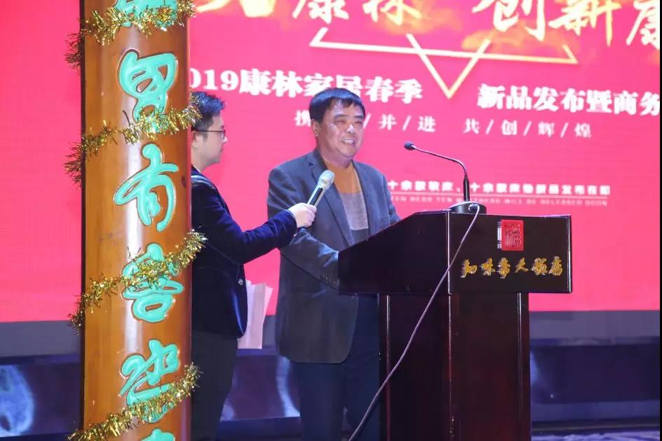 2月23日,以“活力康林 创新康林”为主题的“2019康林家居春季新品发布会暨商务年会”在淄博盛大召开,来自全国各地的300余位代理商齐聚盛会。山东省家具协会副会长兼秘书长韩庆生,淄博市周村区家具产业联合会会长吴学迅、秘书长王珂,广周皮革布艺商行总经理尹波等行业领导及嘉宾受邀出席,并分别发表致辞。
