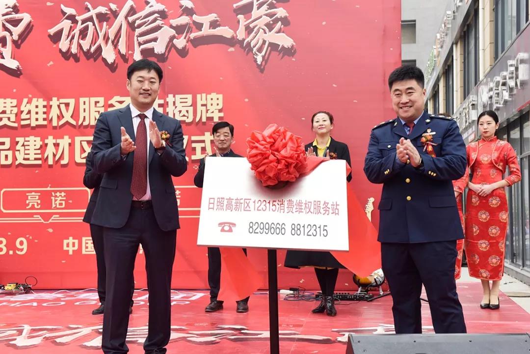 3月9日,放心消费·诚信江豪—12315消费维权服务站揭牌暨江豪精品建材区开业仪式在江豪建材家居城南区服务中心隆重举行。江豪集团董事长路奎江、党委书记路超、副总经理方波、李倩、运营部经理崔维明、精品建材区经理孔霞、中天建筑公司经理曹家祥、市场监督管理局日照高新区分局局长刘贤斌等领导出席并参加剪裁仪式,共庆开业盛事。