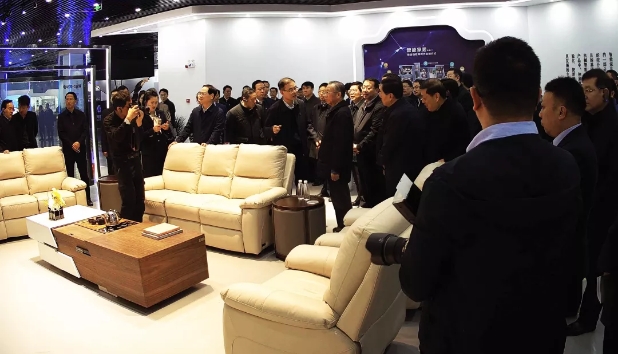 刘家义书记一行首先深入厂区参观,对小镇建设规模、生产运营情况进行实地考察。随后,深入天荣系列家居产品展厅、天荣家居文化馆、智能生产车间、体验式营销中心进行视察。