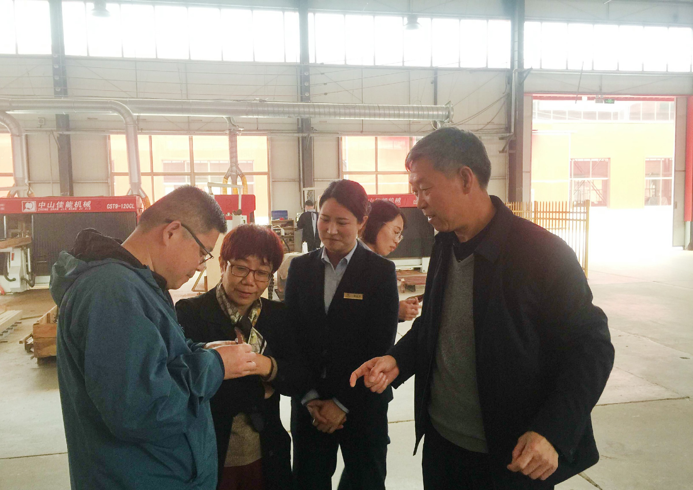 4月8日,山东省家具协会执行会长牛广霞,山东物本六合家具有限公司董事长卢克岩至山东巧夺天工家具有限公司参观考察,巧夺天工董事长张爱冬陪同参观。