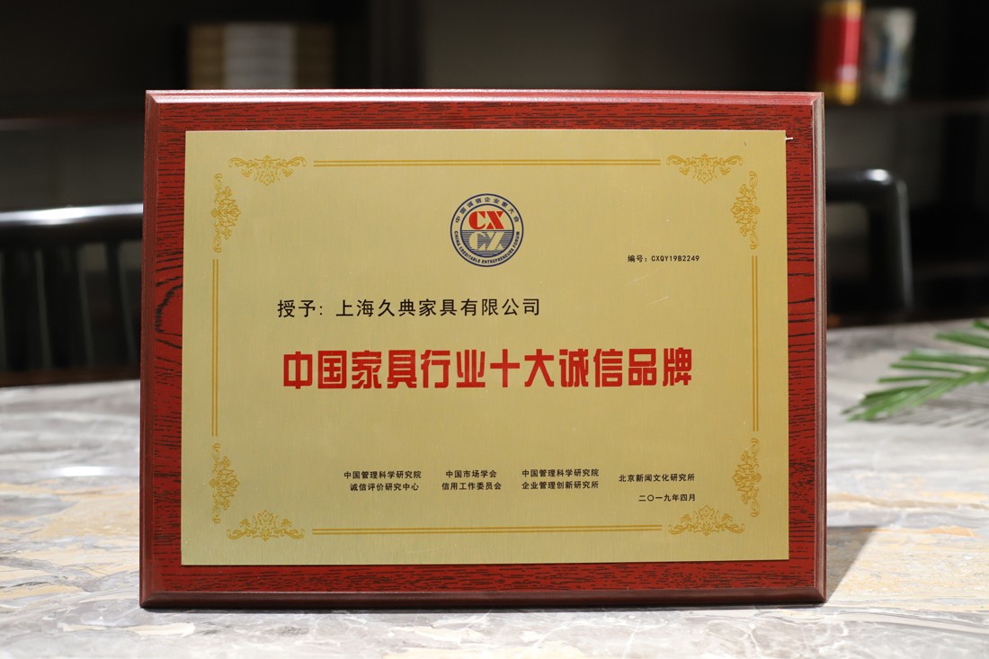 4月28日,第十六届中国诚信企业家大会暨2019中国营商环境大会在北京召开,上海久典家具有限公司受邀参会。经过严格评选,久典家具荣获:中国“重质量 守诚信 好品牌”示范企业和“中国家具行业十大诚信品牌”双项殊荣,会上发布表彰并颁发奖牌证书。
