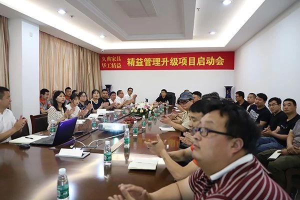 6月2日,上海久典家具有限公司&华工精益管理研究中心升级启动会成功举行,上海久典家具有限公司董事长叶海云、总经理杨慧、华工精益山东分公司总经理田钊、华工精益驻久典家具项目组组长朱平、副组长周晨、久典家具生产厂长朱洪全、营销总经理夏卫军及久典家具的二十多位管理精英共同参会。
