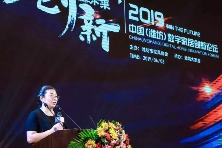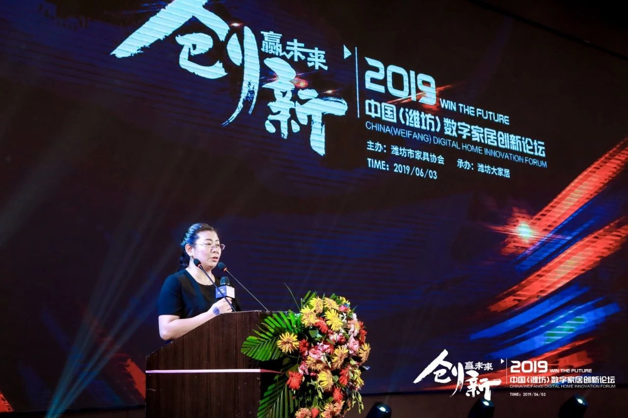 6月3日,“创新赢未来”2019中国(潍坊)数字家居创新论坛在潍坊富力铂尔曼酒店开幕,论坛由潍坊市家具协会主办,潍坊大家居协办。行业协会、联盟、产业链上下游专家、学者、家具制造企业代表及媒体五百余人齐聚潍坊,为行业支招,助力家居制造企业转型升级,共享行业盛宴。山东省家具协会执行会长牛广霞、山东省家具协会常务副会长/潍坊市家具协会副会长/诸城市新华宇家具有限公司董事长赵慧应邀出席并致辞。