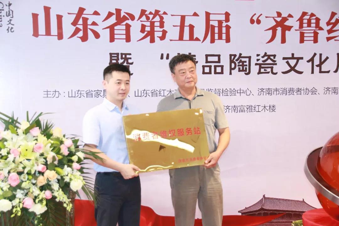 随后,济南市消费者协会王强秘书长为富雅家居董事长路楠进行了“消费者维权服务站”颁牌仪式。