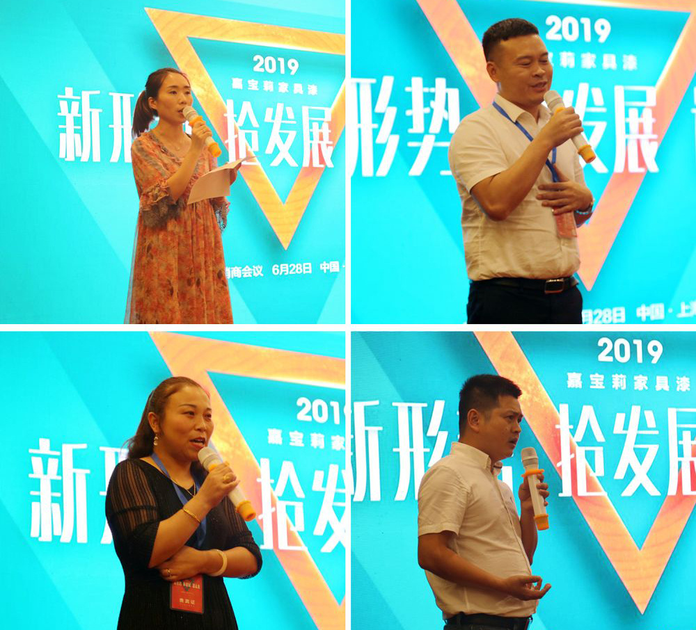 会上,嘉宝莉家具漆年度优秀经销商作经验分享,精彩的发言让每位新经销商振奋人心,更让大家了解了一个新的快速成长的渠道。时光雕琢,匠心汇聚。嘉宝莉创立至今,正因所有经销商万众一心,才有了今天嘉宝莉187亿的品牌价值。风雨数十载,嘉宝莉家具漆始终专注于产品力的升级迭代,研发绿色涂装整体解决方案。新形势,抢占发展制高点,共谋涂料行业新未来。