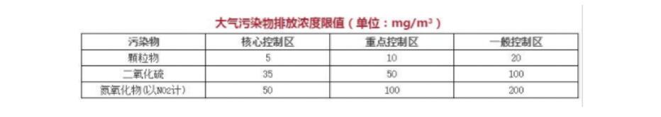 修订后的《区域性大气污染物综合排放标准》确定总体要求,以通过环境目标倒逼企业转方式、调结构。其采用分区分阶段的策略,依据生态环境敏感程度、人口密度、环境承载能力3个因素,把全省区域划分为核心控制区、重点控制区和一般控制区,不同区域执行不同的排放限值,企业根据所在位置分区执行控制要求。其中,核心控制区内禁止新建污染大气环境的生产项目。