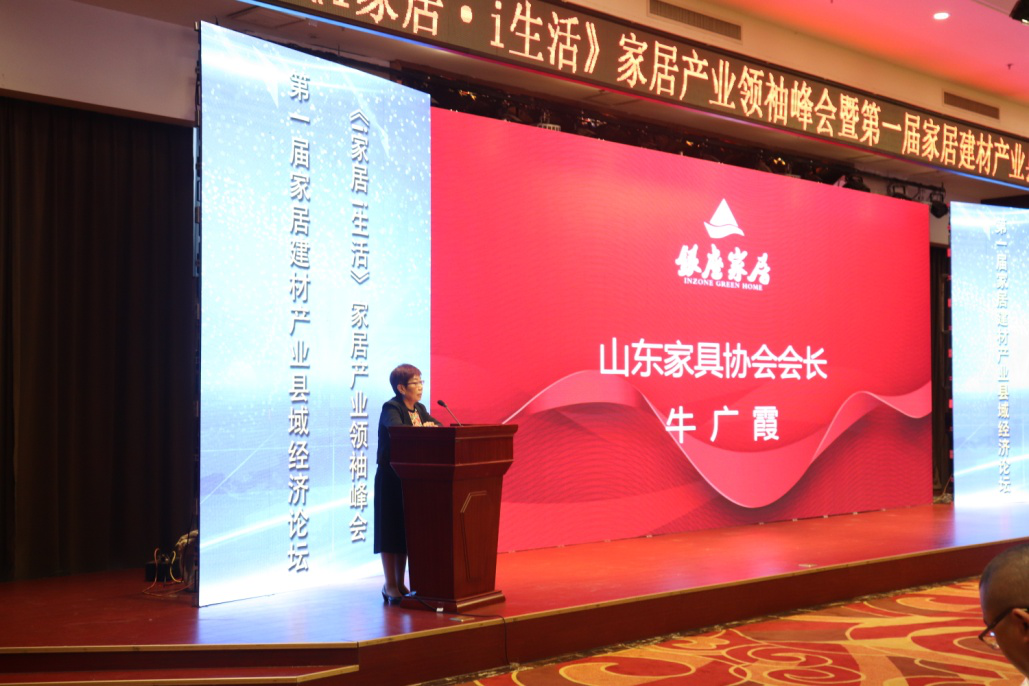 2019年8月6日,《I家居*I生活》家居产业领袖峰会&第一届家居建材产业县域经济论坛在新泰市荣峰国际大酒店圆满召开。活动以“当前经济形势下,县级市场家居建材业发展,探讨发挥新泰此类县级城市区域领导作用”为主题,由山东省家具协会、银座家居主办,山东新易泰物流有限公司承办,中国国际贸易促进会新泰市委员会、新泰市汶南镇协办,活动取得圆满成功。山东省家具协会执行会长牛广霞应邀出席活动并致辞。