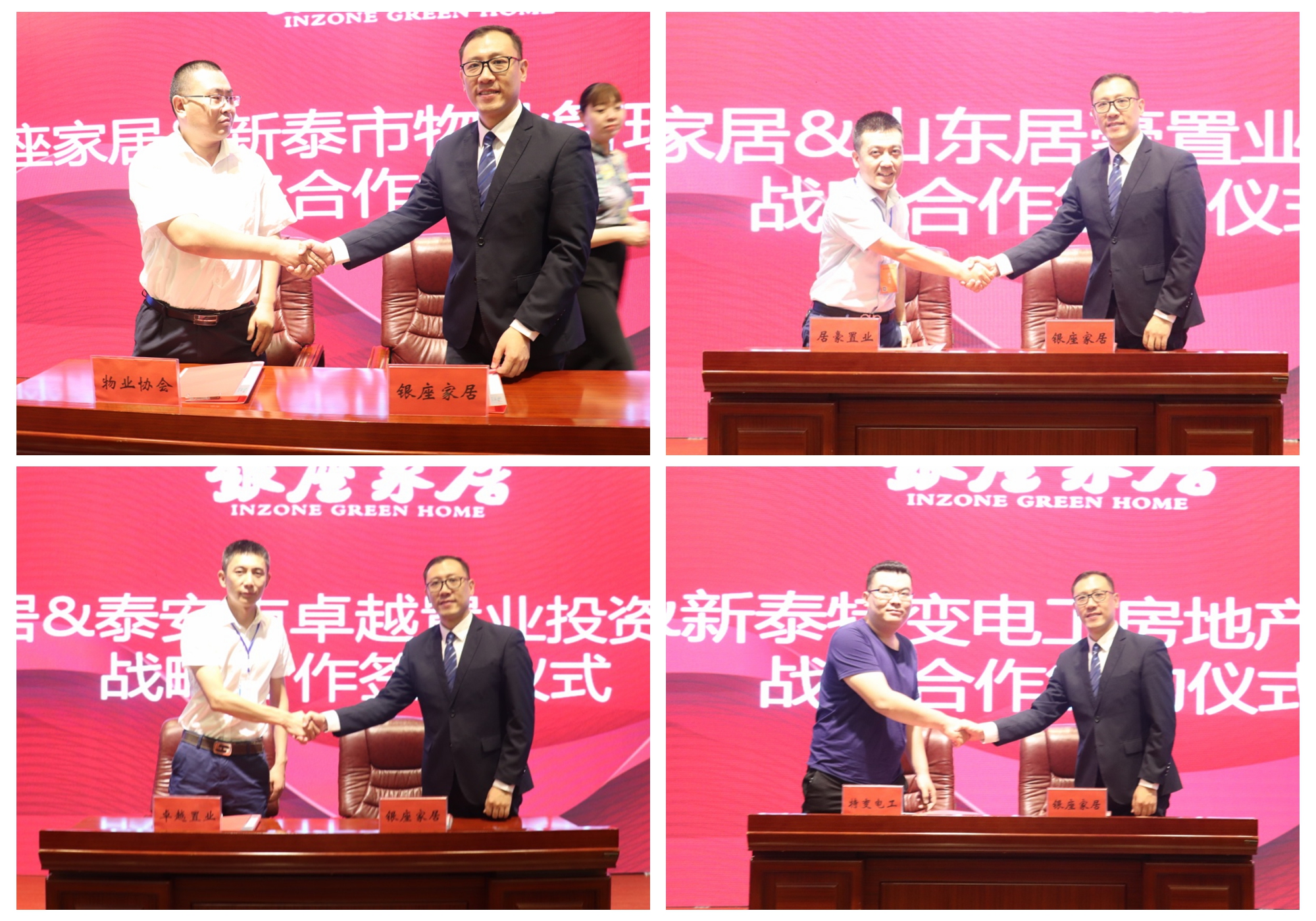 会议最后,银座家居新泰店与新泰市物业管理行业协会、山东居豪置业有限公司、泰安卓越置业投资有限公司、新泰特变电工房地产开发有限公司签订了战略合作协议,主办方表示,在未来里合作的多方之间必将继续发声、持续发声,携手共进,为新泰的广大人民谋取更多的福利。