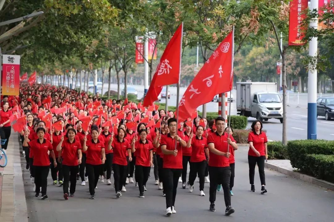 9月17日,“喜迎国庆70载 健步走向新时代”2019德百集团万人健步行成功举行,向新中国成立70周年璀璨献礼。万余德百职工统一着装,精神抖擞,踏歌而行,踏上征程出发,健步行沿着东风东路,自德百家居广场一路向东行进,“红色的长龙”成为州城清晨一道靓丽的风景线。享受行走的力量与快乐,阔步前进,用热情和汗水,挥洒出一幅激情的篇章。同期齐河德百、夏津德百、宁津德百、武城德百、温泉旅游小镇的员工及威海培训基地学员也同步开展活动。