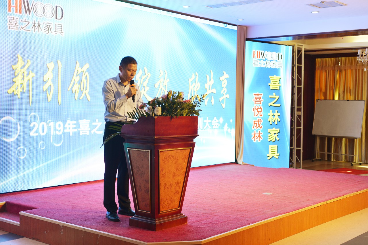 喜之林家具副总经理李华国总结了2018年至2019年公司销售情况,并对未来做了充分的战术规划,思路清晰,言简意赅,提升了经销商们的信心和勇气。