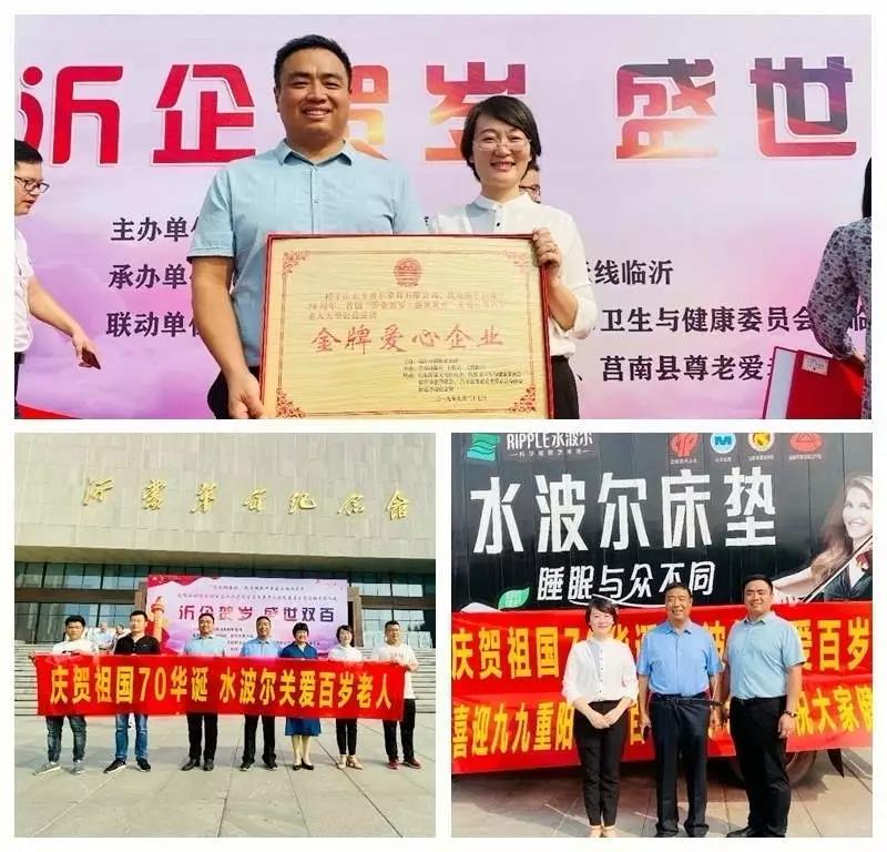 9月27日,为庆祝新中国成立70周年,喜迎九九重阳节,首届“沂企贺岁 盛世双百”关爱百名百岁老人大型公益慈善活动盛装启幕。山东水波尔家居有限公司积极响应参加了本次活动并荣获“金牌爱心企业”的荣誉。