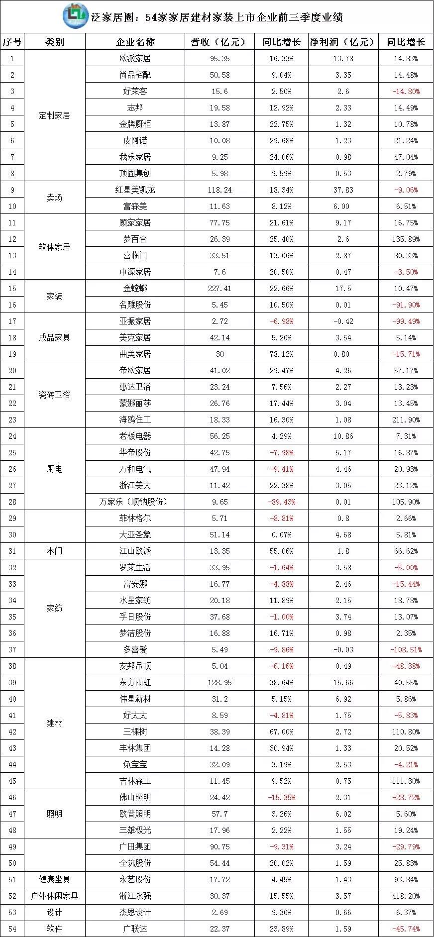 今年前三季度上市家居建材家装54家企业报表公布28%企业净利下滑