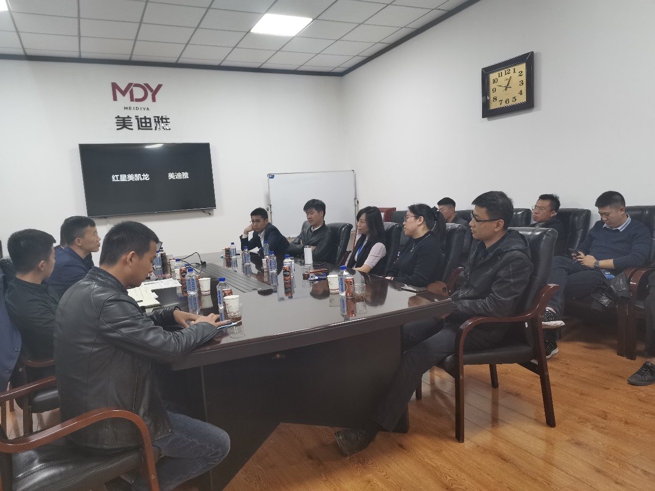 10月30日,红星美凯龙集团山东营发招商团队到美迪雅参观交流,美迪雅家居副总经理赵伟带领红星美凯龙一行先后参观了工厂展厅和各生产流水线,对美迪雅的品质以及品牌实力有了深入的了解。随后,双方对日后如何更好地合作,改善山东家居市场环境、发展进行了详细交流。