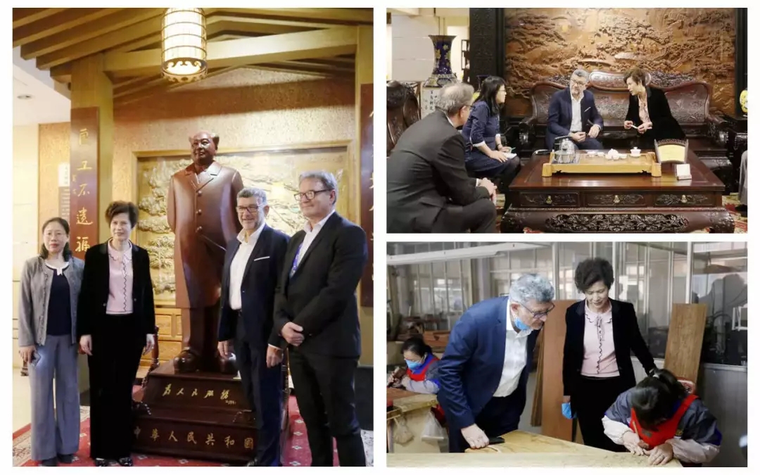近日,法国拉罗什市市长吕克·布阿赫、黑木工厂公司经理罗歇·勒伯夫等一行莅临山东福王集团参观考察,并为福王题词留念。淄博周村区政府副区长解金章、山东福王家具有限公司总经理万翠华等陪同并进行了深入交流。吕克·布阿赫一行先后参观了福王红木博物馆、福王家居工厂店和生产车间,对福王产品、商场环境及服务给予了充分认可,对生产工艺,尤其是福王红木手工雕刻技艺给予了高度赞赏。此次考察交流,是建立国际友城合作发展关系的重要开端,对双方共寻友好合作思路及中西文化互融提供了良好机遇,对福王产品及红木文化打开国门、走向世界奠定了坚实的基础。