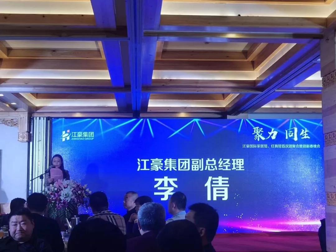 1月13日,“聚力同生——江豪国际家居馆、灯具馆首次团聚会暨迎新春晚会”隆重举行。江豪集团董事长路奎江、党委书记路超、集团副总经理方波、李倩等中高层领导以及江豪国际家居馆、江豪灯具馆200余商户齐聚一堂、共话新年。