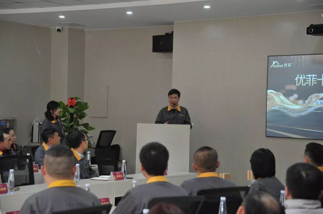 活动伊始,优菲副总经理马春伟作为“热血青年”代表进行讲话,马总指出,优菲十年,是自己人生中的黄金十年,发展至今,最重要的三点是平台选择、努力奋斗和个人品德。优菲副董事长陈华东提到,虽然加入优菲只有短短一个月,但看到优菲十年间取得优异成绩,深感自豪。