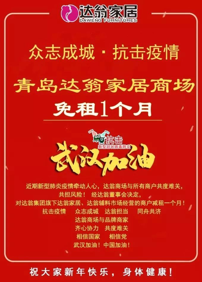 众志成城 抗击疫情——青岛达翁家居商场免租1个月