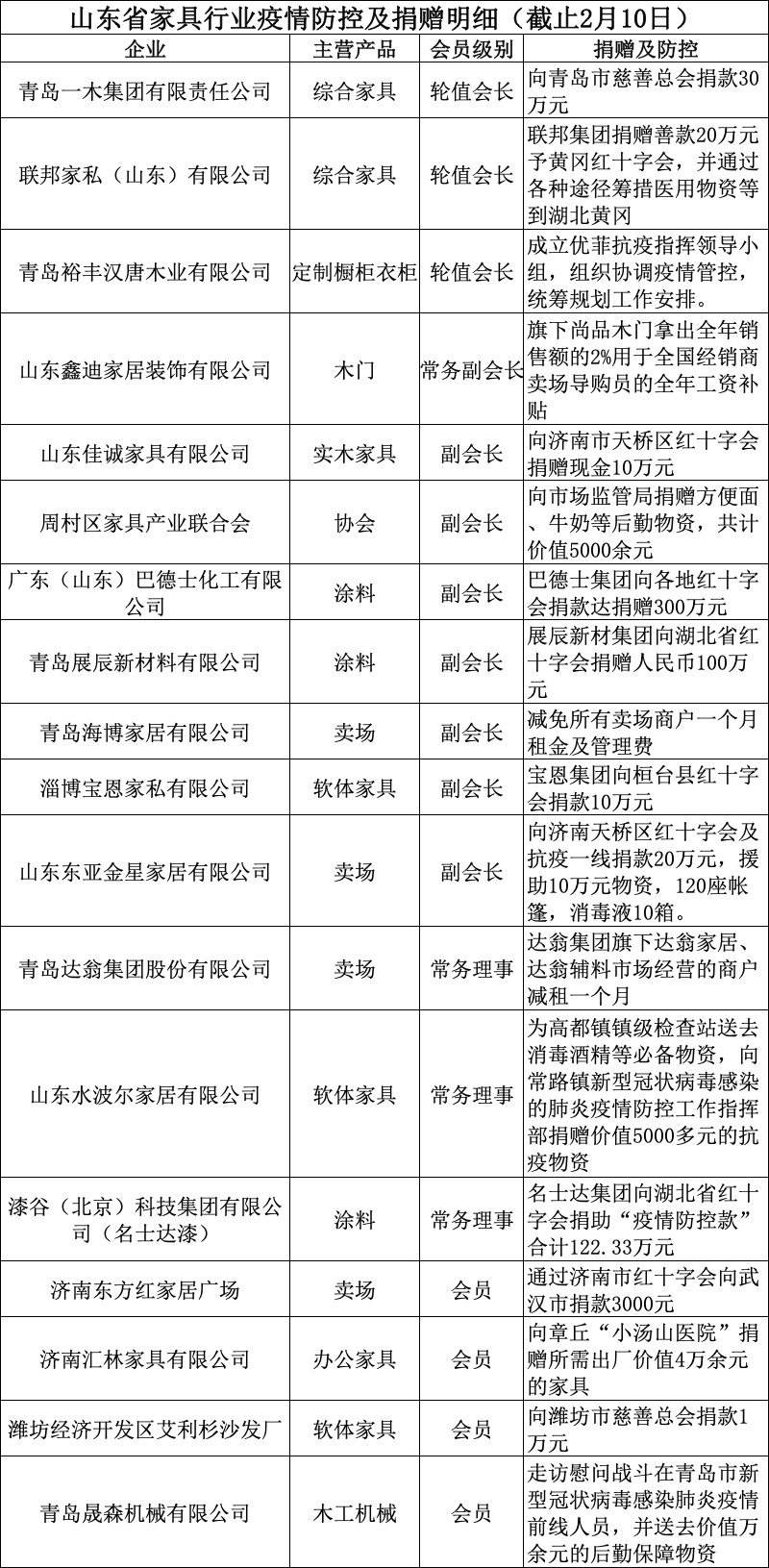 众志成城 抗击疫情——山东家具行业献爱心、共行动(一)