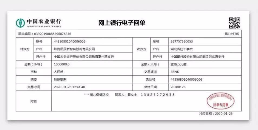 展辰新材料向湖北捐赠100万元,勠力同心抗击疫情