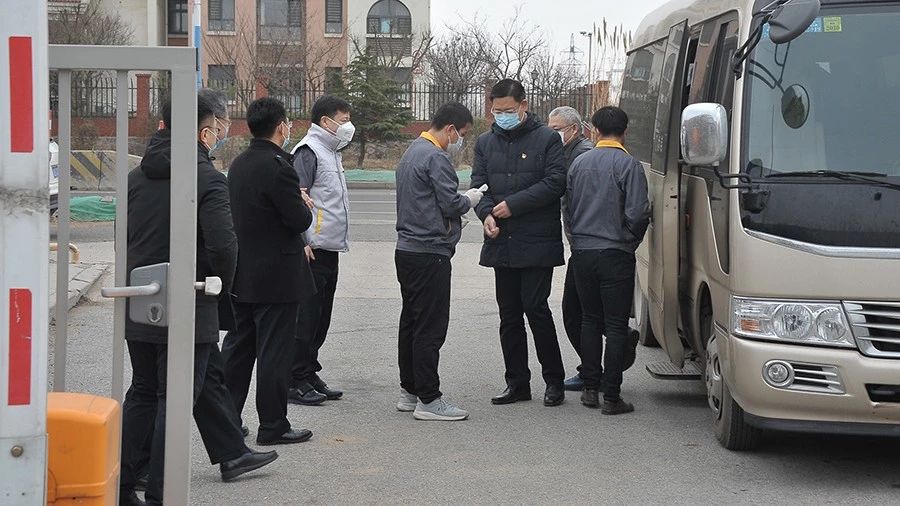 区委书记一行在进厂前下车接受体温检查