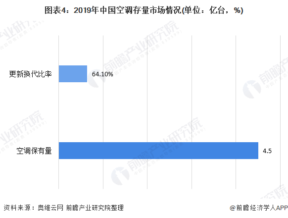 根据奥维云网公布的数据显示,截至2019年,中国空调市场保有量为4.5亿台,预计中国空调更新换代比率为64.1%,存量市场成为拉动中国空调消费的主要动力。增量市场上,近年来中国空调百户拥有量逐年上升,三四线城市的拉力逐渐减弱,增量市场空间有限。因此,我国空调行业已经进入存量市场。