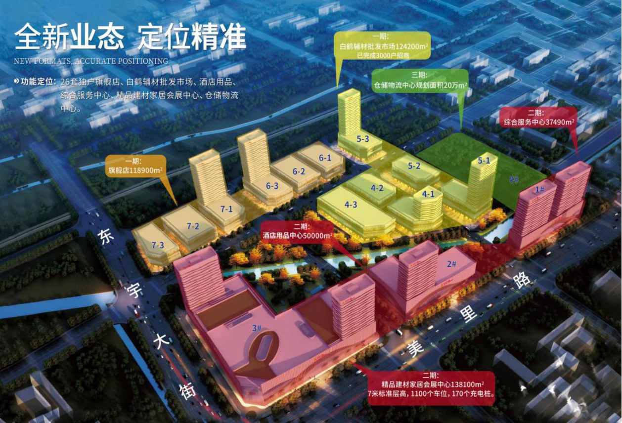 据了解,华美立家白鹤建材家居博览中心是政府重点扶持项目,山东白鹤集团斥资18亿元实力开发建设,由华美立家商业管理有限公司统一管理的超大规模家居、建材、装饰产业集群。项目位于济南天桥区药山片区,规划总建筑面积70万㎡,分三期开发。一期建材家居旗舰店及一期白鹤辅材批发市场,总建筑面积约24.3万㎡;二期精品建材家居会展中心,酒店中心以及综合服务中心,总建筑面积约22.6万㎡;三期项目建设约20万㎡家居建材仓储物流中心,引进蚁安居,提供家居供应链干线、仓储、配送、安装、维修一体化服务。未来,华美立家白鹤建材家居博览中心将形成展销、物流、仓储为一体的一条龙服务板块链,成为山东乃至华东建材家居行业经销新中心。