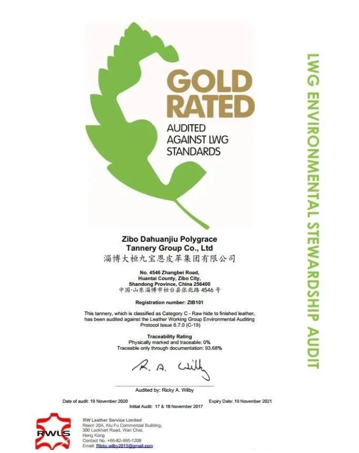 LWG证书是皮革企业在国际高端品牌市场的准入门槛,拥有LWG证书,才能具备为国际知名手袋、沙发等品牌供货的资格。制革公司本次获评LWG金牌证书,为拓展国际奢侈手袋品牌、顶级沙发品牌等市场提供了必要条件。