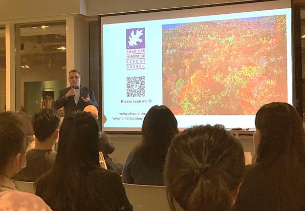 12月15日,美国阔叶木外销委员会(AHEC)东南亚及大中华区办事处携手美国建筑师学会上海|北京(AIA Shanghai | Beijing)在上海Haworth展示厅,举办以“木材在建筑中的优势”为主题的美国阔叶木可持续性专题研讨会。此次会议通过线下演讲结合线上直播方式,吸引超过2.9万观众及建筑师、工程师、设计师和媒体等行业人士参与。美国驻华大使馆农业贸易处驻上海办事处(ATO Shanghai)副主任Mark Hanzel,美国建筑师学会上海分会主席Hugh Whitmore,SOM上海分公司副总监、资深结构工程师李兆凡,Ennead建筑设计事务所高级设计师Arturo Revilla博士,济木建筑科技总经理郭苏夷博士共同探讨美国阔叶木在可持续性和美学方面的独特优势,推动其在室内设计、建筑和家具制造等各个领域的应用。