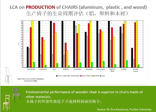 SOM上海分公司副总监、资深结构工程师李兆凡介绍,美国森林资源十分充足,相关学者建议多采伐一些林木,因为美国阔叶木自然增长量超过了砍伐量。印第安纳州的普渡大学曾做过一项研究,用不同材料做椅子,看做成的椅子对环境造成什么样的影响?这些材料包括实木、塑料、铝材。研究发现,用实木制成的椅子在整个产品生命周期中,远低于其它所有材料的碳足迹,对整个环境十分友好。