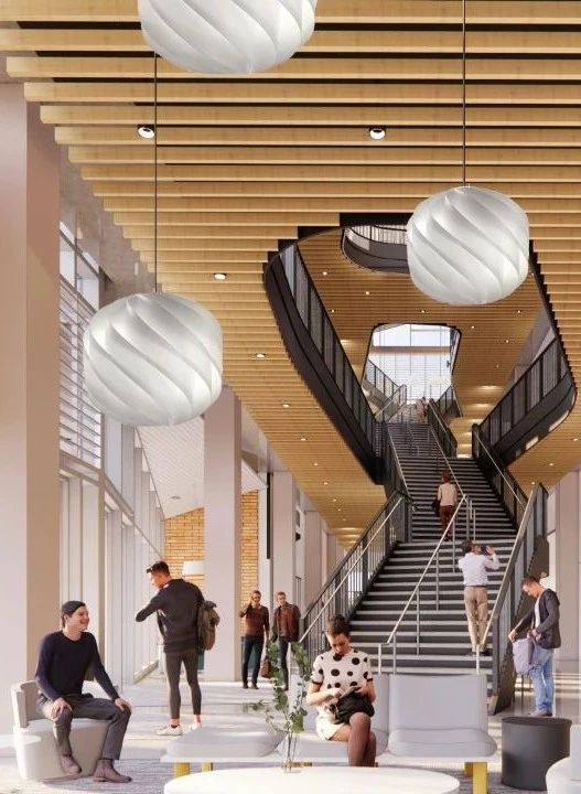 富有戏剧性的楼梯加强了学生之间的合作与联系。
