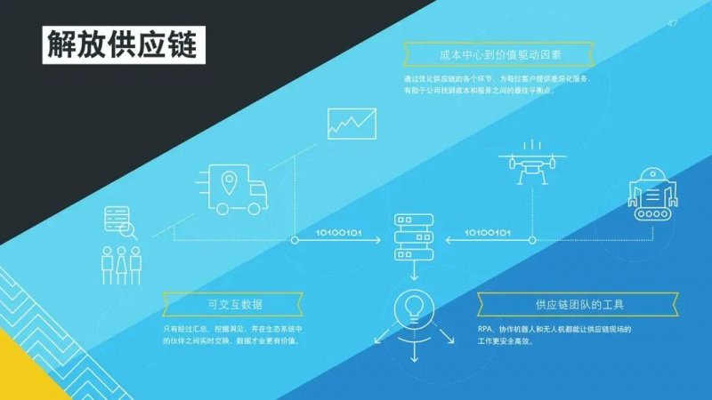 目光长远的生产商、零售商和经销商正在探索如何将供应链成本中心转变成以客户为中心的价值驱动器。他们从各自供应网络中收集、分析和分享的数据中获取更多价值。最终,其中一些组织寻找机会使用机器人、无人机和高级图像识别技术,让实体供应链交互更高效、更有效和对员工更安全。