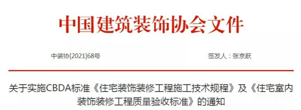 近期,CBDA标准《住宅装饰装修工程施工技术规程》及《住宅室内装饰装修工程质量验收标准》(以下简称“两项标准”)正式发布,第一次把“家装”写进了全国性的标准当中。