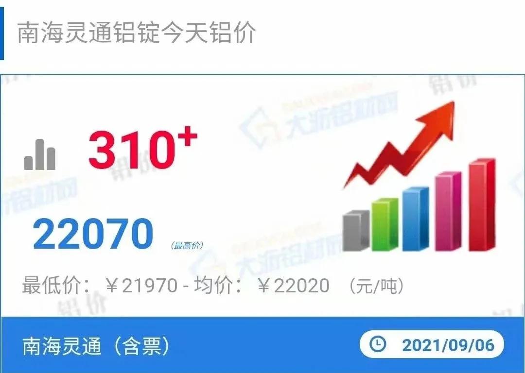 前不久,铝锭价格突破历史新高,到达22070元/吨!据相关数据显示,2021年8月11日铝锭价格就到达20510元/吨,相比去年同期的14680元/吨,上涨了39.71%。