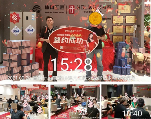 开战即决战,起步即冲刺!本次活动的成功离不开好莱客艺术整装高效、专业的狼性营销团队,活动一开始,好莱客艺术整装营销团队便强调统一思想,简单执行,签单,充分调动团队的积极性;活动执行过程,营销团队全程为业绩负责,为团队搞氛围、做培训、定战术、抓执行,终迎来了高潮时刻——活动期间宝鸡商场所有销售人员全部实现开单,实现一个月业绩超越去年全年业绩,这在宝鸡经销商加盟好莱客艺术整装之前几乎是难以想象的事情!