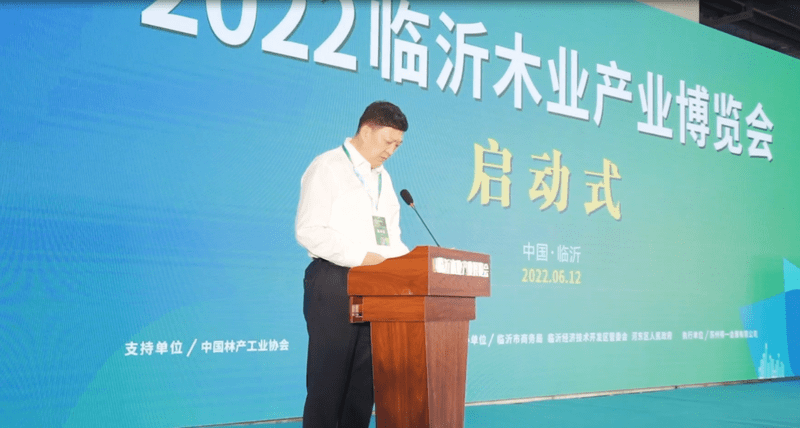 6月12日9点30分,临沂市委常委、副市长隽新阳同志主持2022临沂木业产业博览会启动仪式。