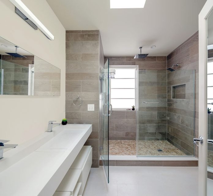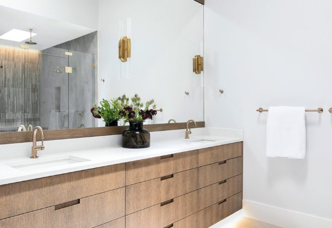 浴室通常空间很小,每一寸空间都很重要,尤其是当主浴室中有多个用户时。当没有足够的空间来所有人的需求时,设计师会鼓励客户考虑优先事项,并以此来引导设计。例如,如果没有单独的浴缸和淋浴的空间,可以设计一个浴缸和淋浴的组合。壁挂式马桶也是节省空间的好方法,会给人一种房间更大的错觉。