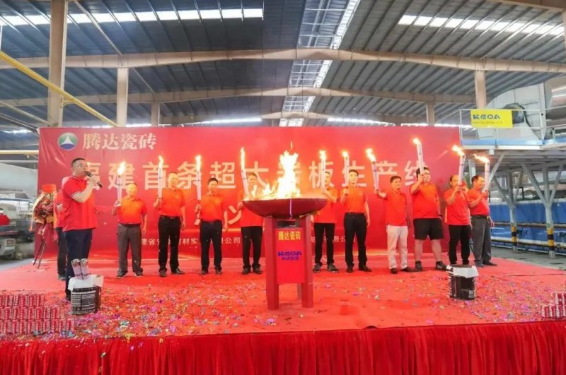 6月8日,福建产区首条超大规格岩板线顺利点火。该生产线是晋江腾达陶瓷投资建造的2号岩板生产线,主要生产820×1400mm、900×1800mm、800×2000mm等规格岩板,可实现横排竖进3片800×2000×11mm岩板,设计日产量19000㎡。